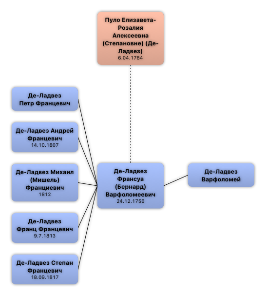 Основательницей цветочной фирмы, по-видимому, надо считать Елизавету Розалию де Ладвез (Elisabeth-Rosalie de-Ladeveze, 6 апреля 1784 – 3 февраля 1845). Она состояла в браке с Франсуа-Бернардом де Ладвезом (Francois-Bernard de-Ladeveze, 24 декабря 1756 – 2 сентября 1846). В московских адрес-календарях упоминались их сыновья – подпоручик Петр Францевич и учитель I кадетского корпуса Андрей Францевич де Ладвез (14 октября 1807 – 26 июня 1857). Отставной подпоручик Михаил Францевич де Ладвез служил у московского гражданского губернатора, он владел домом на Патриарших прудах. Михаил Францевич славился цыганской пляской на танцевальных вечерах в Рязани в начале 1850-х годов. Мемуарист писал о нем: «Сын старого французского эмигранта, жена коего долго имела фабрику и магазин искусственных цветов в Москве на Петровке. <…> Этот Ладвез служил прежде в армейской пехоте и женился на девушке с порядочным состоянием. Один из его братьев, ученик Петербургской Академии художеств, вышел талантливым живописцем». Художником стал Стефан (Степан) Францевич де Ладвез (1817–1854/55), рано проявивший способности к искусству. Его определили в Академию художеств, где уже в 1835 году он получил 2-ю серебряную медаль за рисунок, работал в Италии, в 1853 году удостоился звания академика.