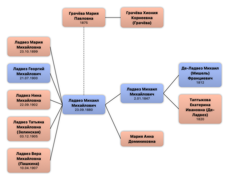 | Внучатая сноха | 01.02.1926 | Ленинград, СССР | 06.10.1997 | Санкт-Петербург, Россия | |