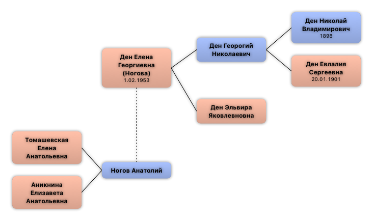 | Троюродная тётя | 01.02.1926 | Ленинград, СССР | 06.10.1997 | Санкт-Петербург, Россия | |