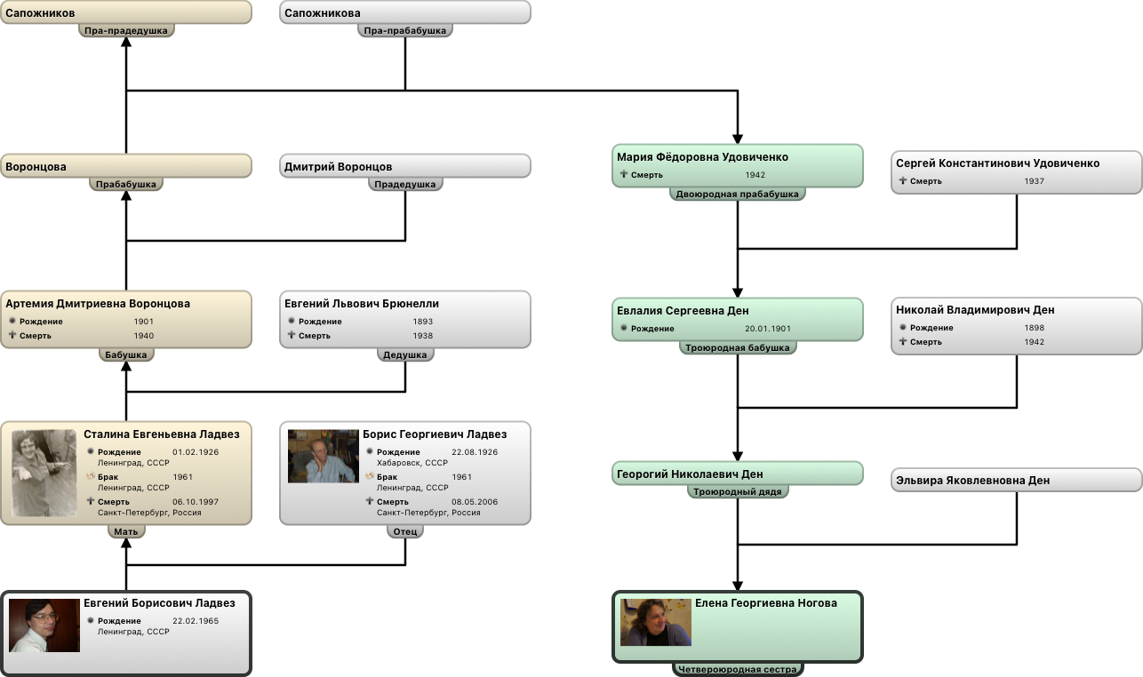 Диаграмма родства Евгений Борисович Ладвез/Елена Георгиевна Ногова