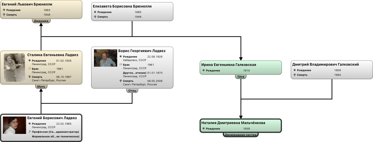 Диаграмма родства Евгений Борисович Ладвез/Наталия Дмитриевна Мальчёнкова