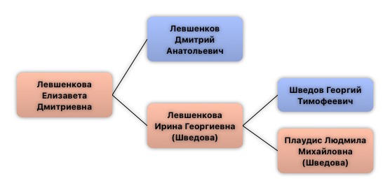 | Двоюродная бабушка | 13.05.1951 | Ленинград, СССР | 07.01.2009 | Санкт-Петербург, Россия | |